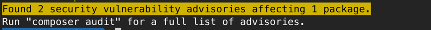 Alternatively, there's an --audit flag on the composer install command itself to install and run an abbreviated audit automatically. With this flag enabled, composer also exits with a non-zero status code if security advisories are found.